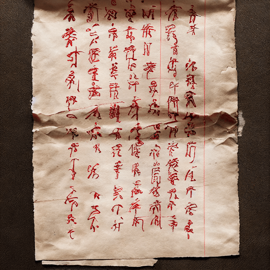 “The paper’s edges are browned and torn, and its coarse surface is sullied with bloody fingerprints, but it contains spidery handwriting in fading red ink and an archaic script.”