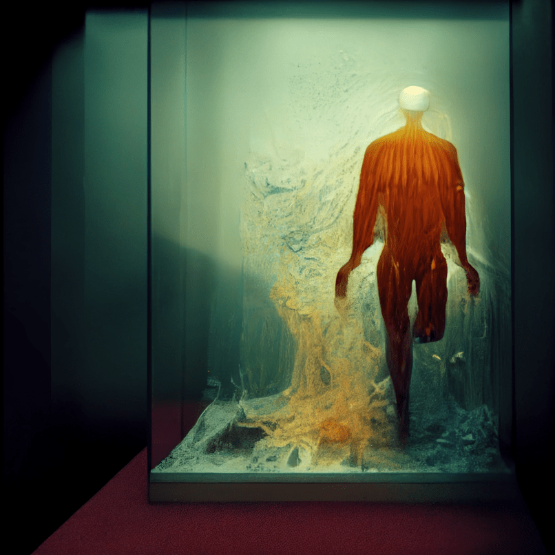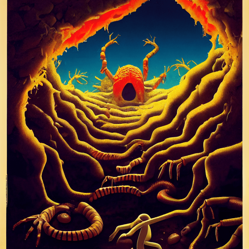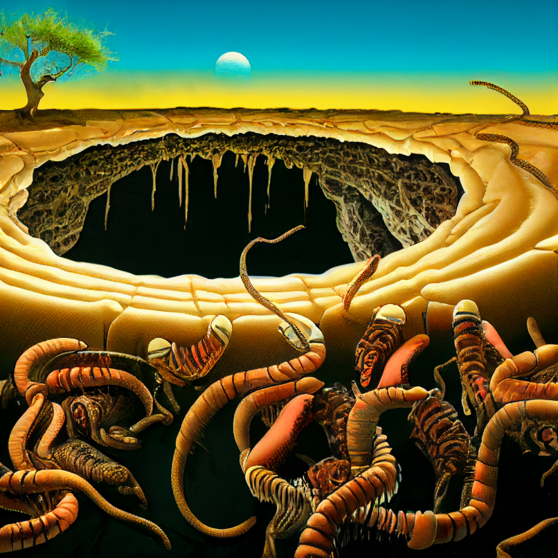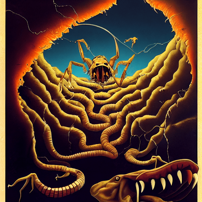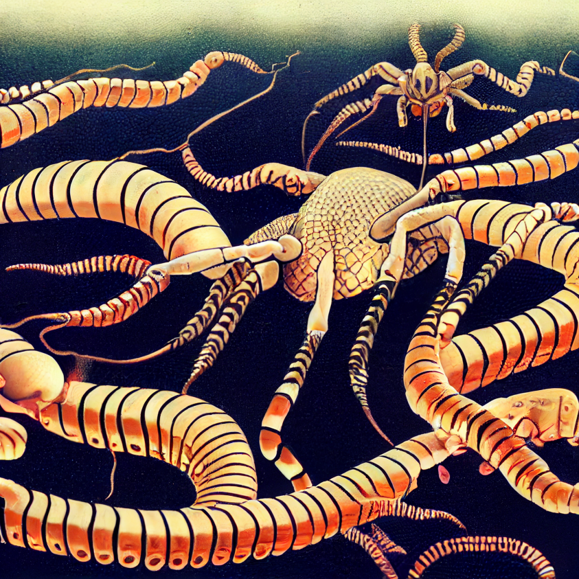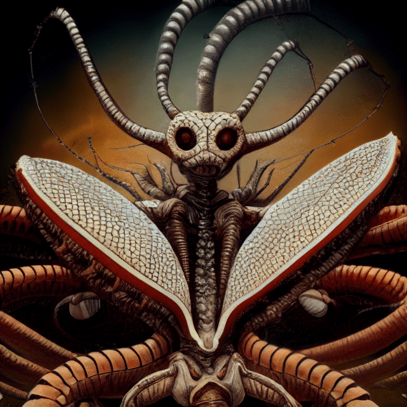 Coaxing two neural networks to produce generated images of whatever nonsense is going on in a chapter creates a strange dynamic: plenty of the stuff they spit out inspires me to go on deranged tangents that in turn send new prompts their way. It’s like having talented creative partners that can’t refuse to cooperate with you no matter how much they’d want to.