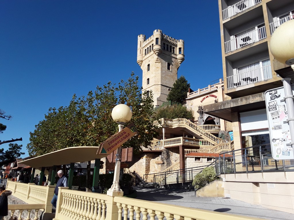 That vaguely castle-like structure on top of a small mountain is my destination: the amusement park of Mount Igueldo.